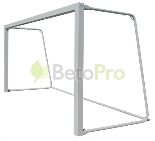 Zastosowany system sztywnych narożników wsuwanych w poprzeczkę i słupki, dodatkowo usztywnionych poprzez przykręcenie do nich boków bramki.
